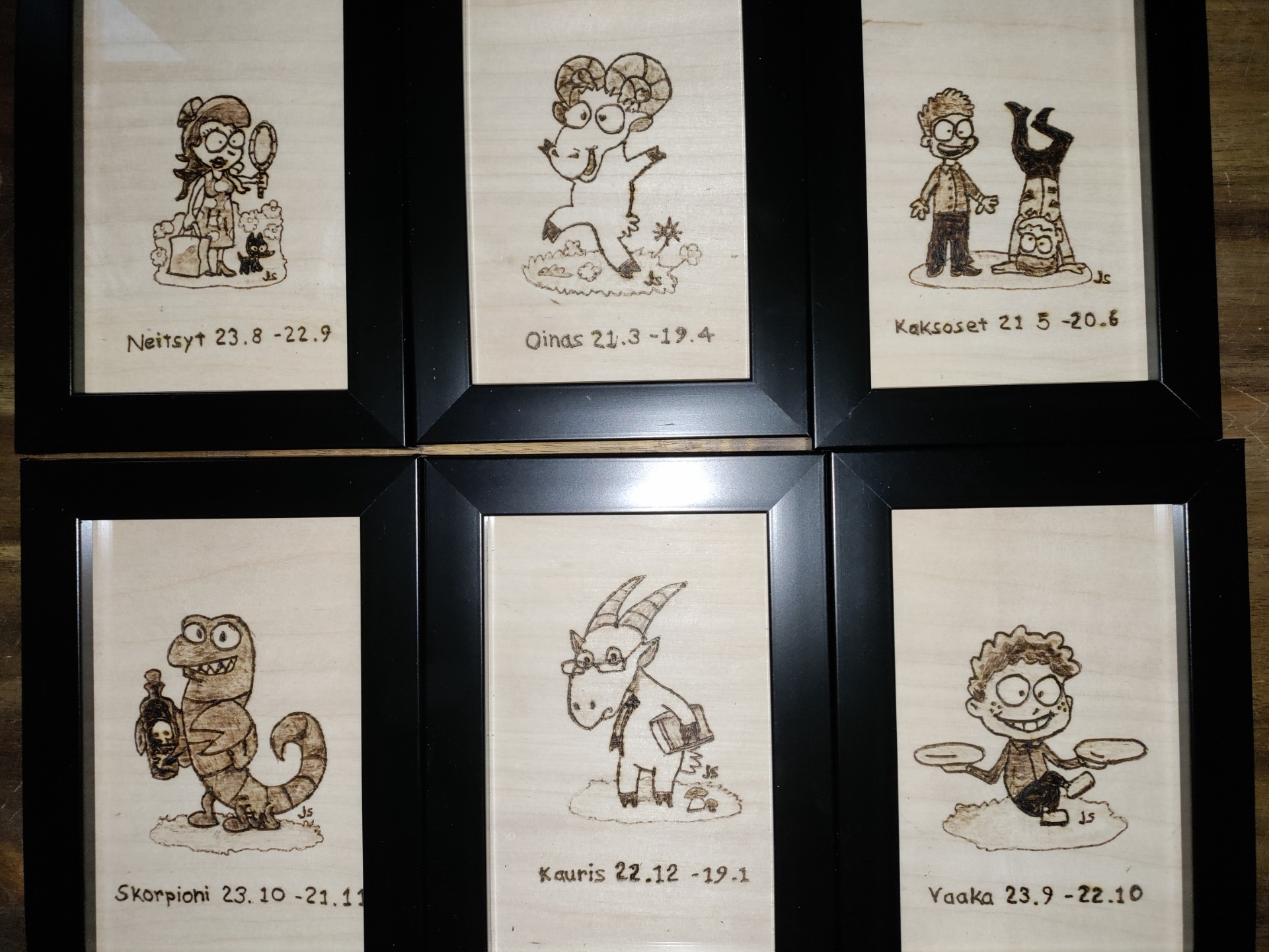 Hauska kehystetty horoskooppitaulu.