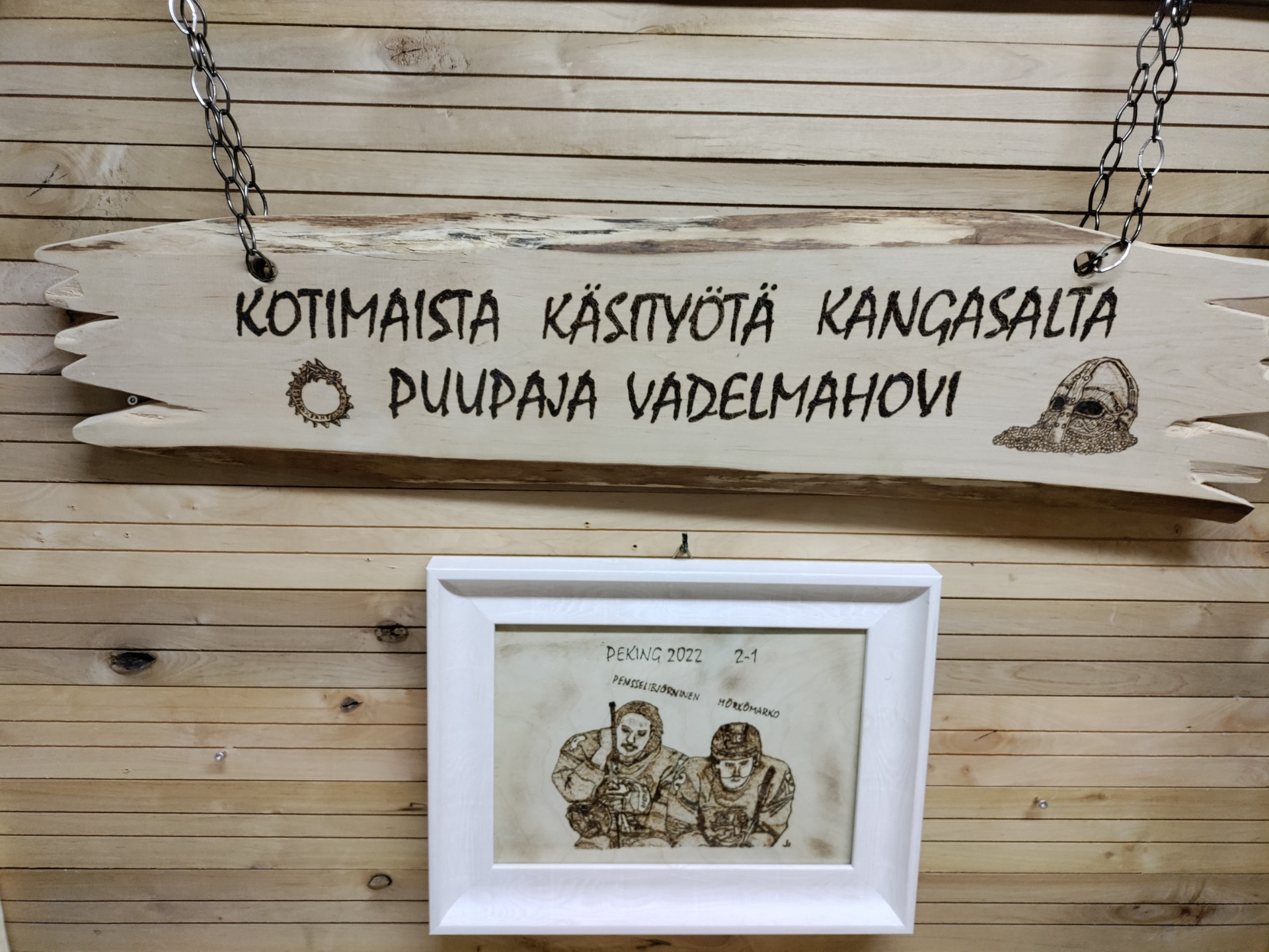 Suomen ensimmäisen olympiakullan kunniaksi ikuistettuna vaihtopenkiltä sankarit MörköMarko ja PensselisetäBjörninen.